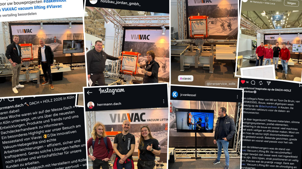 Tijdens de internationale vakbeurs Dach+Holz februari jl. maakten bezoekers van onze stand kans op een gratis VIAVAC-vacuümhijsmachine. Deelname aan de actie was eenvoudig: maak een foto op onze stand en deel deze via social media met de hashtag #VIAVAC. De actie trok veel belangstelling en zorgde voor enthousiaste reacties op én buiten de beursvloer. Hierbij bedanken we iedereen hartelijk voor de deelname. Inmiddels is de winnaar bekend! Eén deelnemer mag zich de trotse eigenaar van een compleet nieuwe VIAVAC-hijsmachine noemen. Bekijk snel wie de winnaar is!